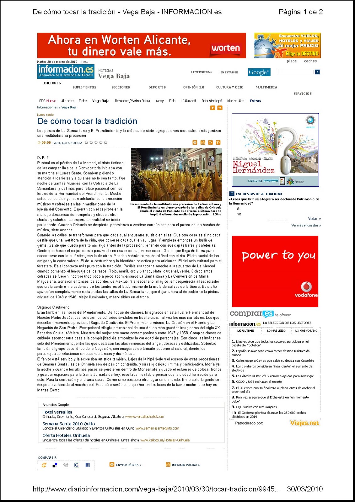 Semana Santa 2010. Lunes Santo 29 de Marzo. Publicación Información
