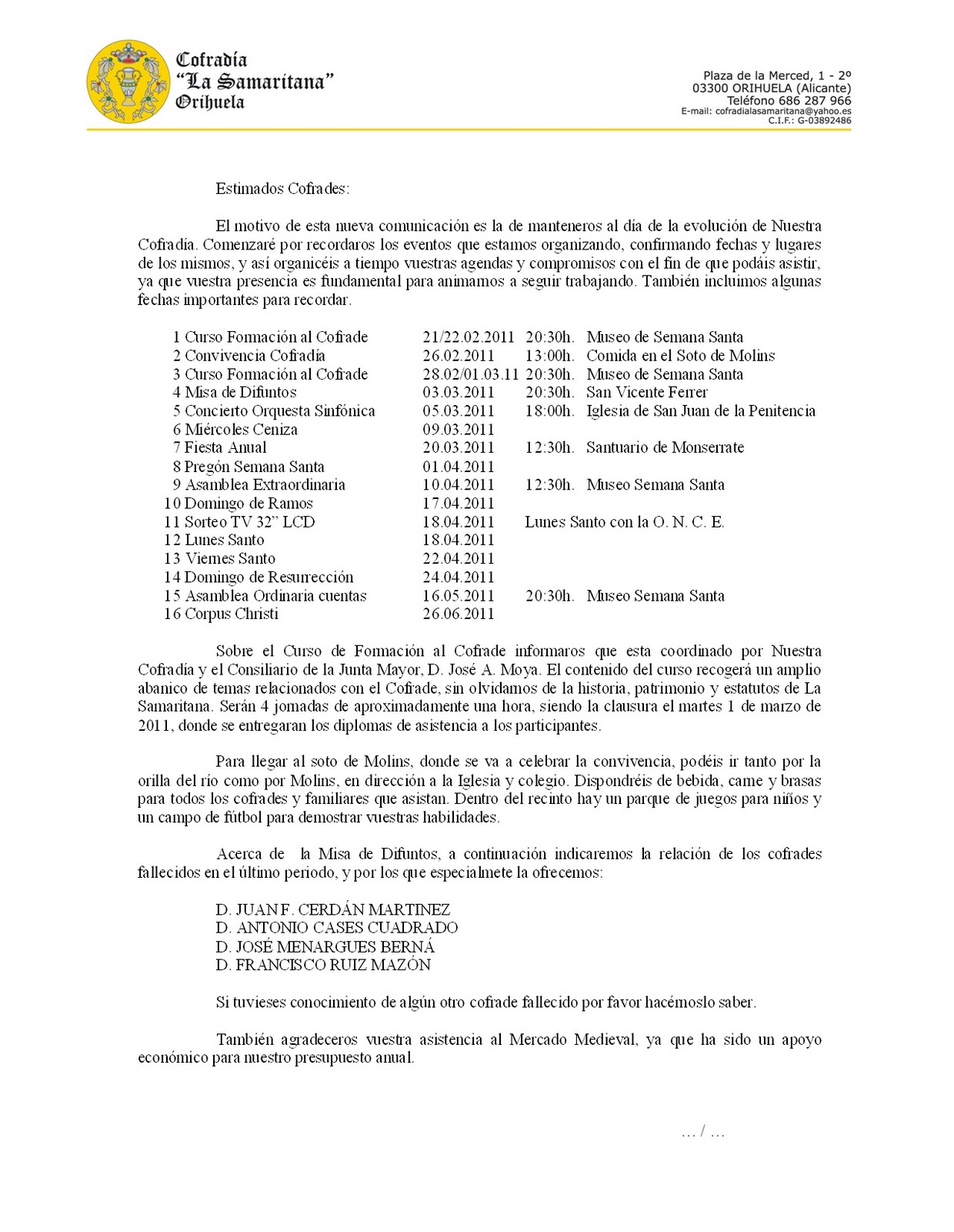 Otras comunicaciones con la Cofradía