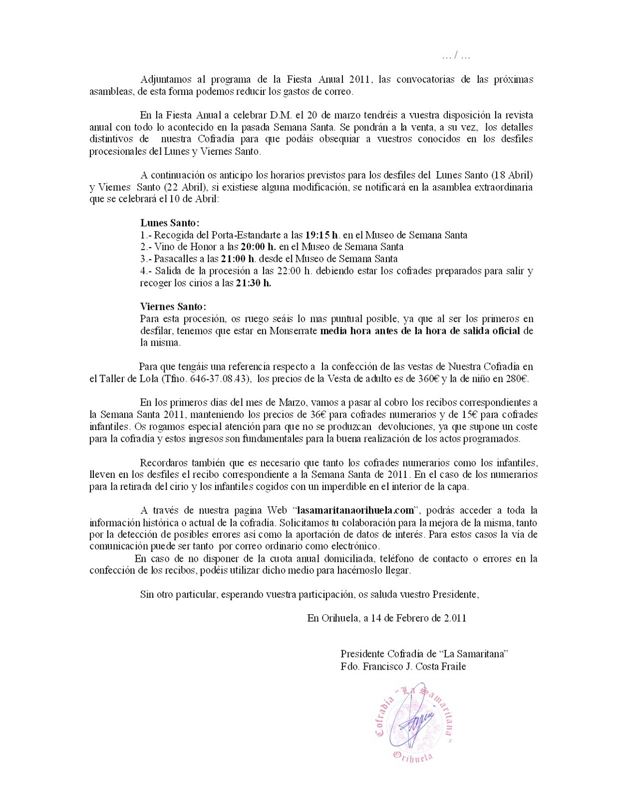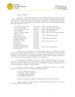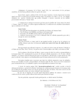 Semana Santa 2011. Convocatoria Asamblea Extraordinaria 10-04-2011