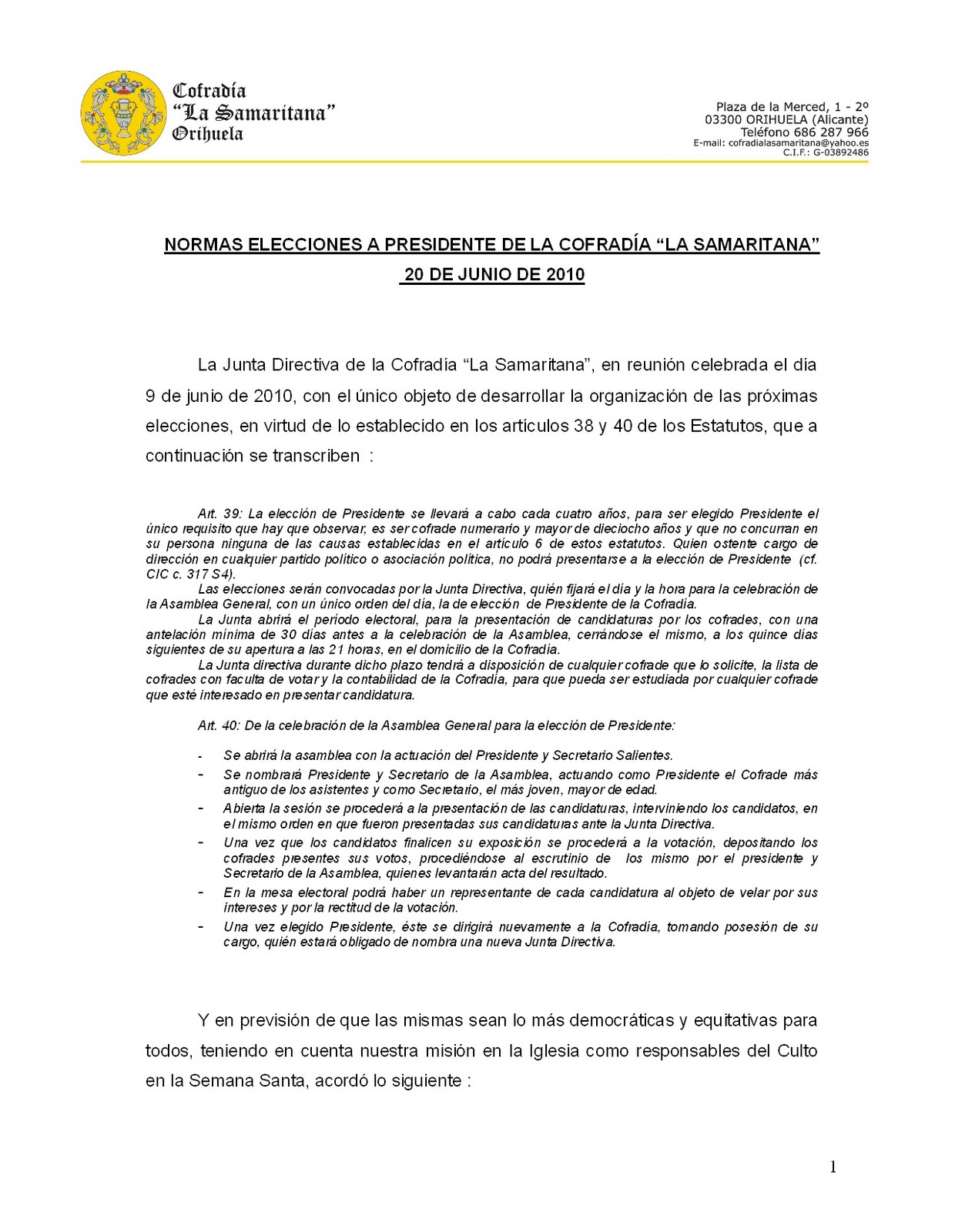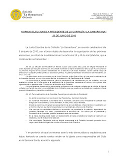 Como anexo teneis las normas que regulan dichas elecciones, quedando a vuestra disposición para cualquier aclaración que necesiteis en el telefono de la Cofradía.